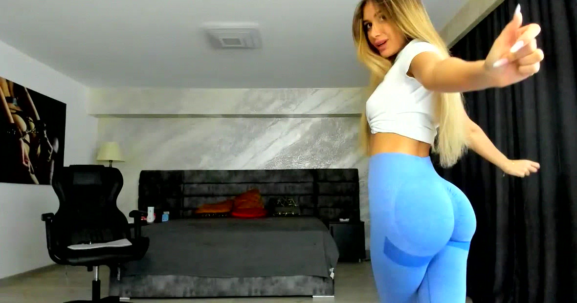 _myaa Blondie dances with her clothes on in front of the camera and spreads her sweet booty